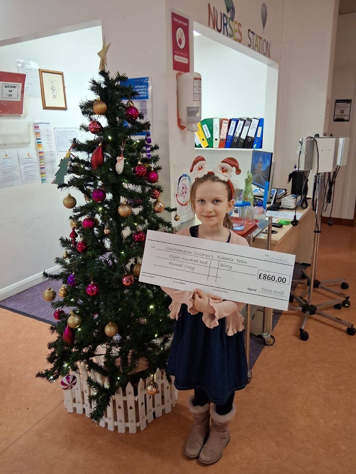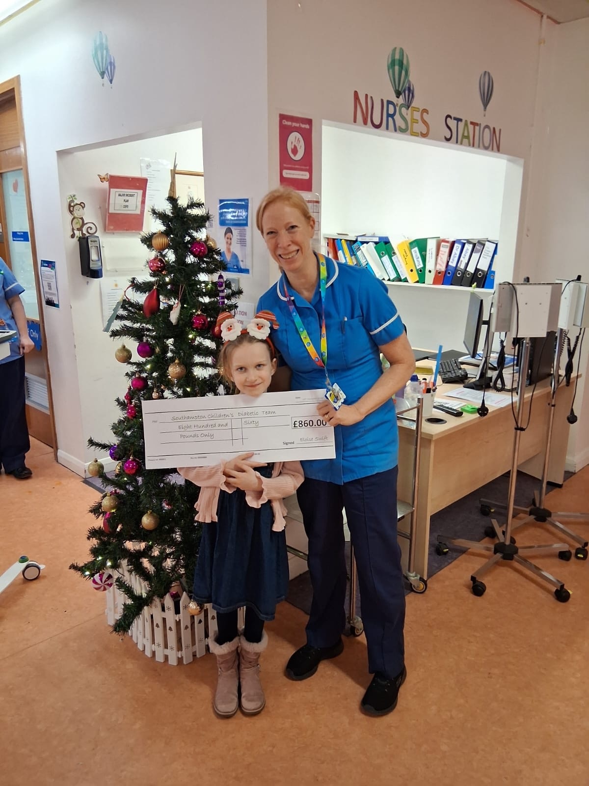 2b340335-33af-4e4c-abe6-45f512ae151a.jpeg694Girl holding a cheque for the hospital, stood with a nurse.A child has raised £860 for Southampton's Children's Diabetic Hospital.